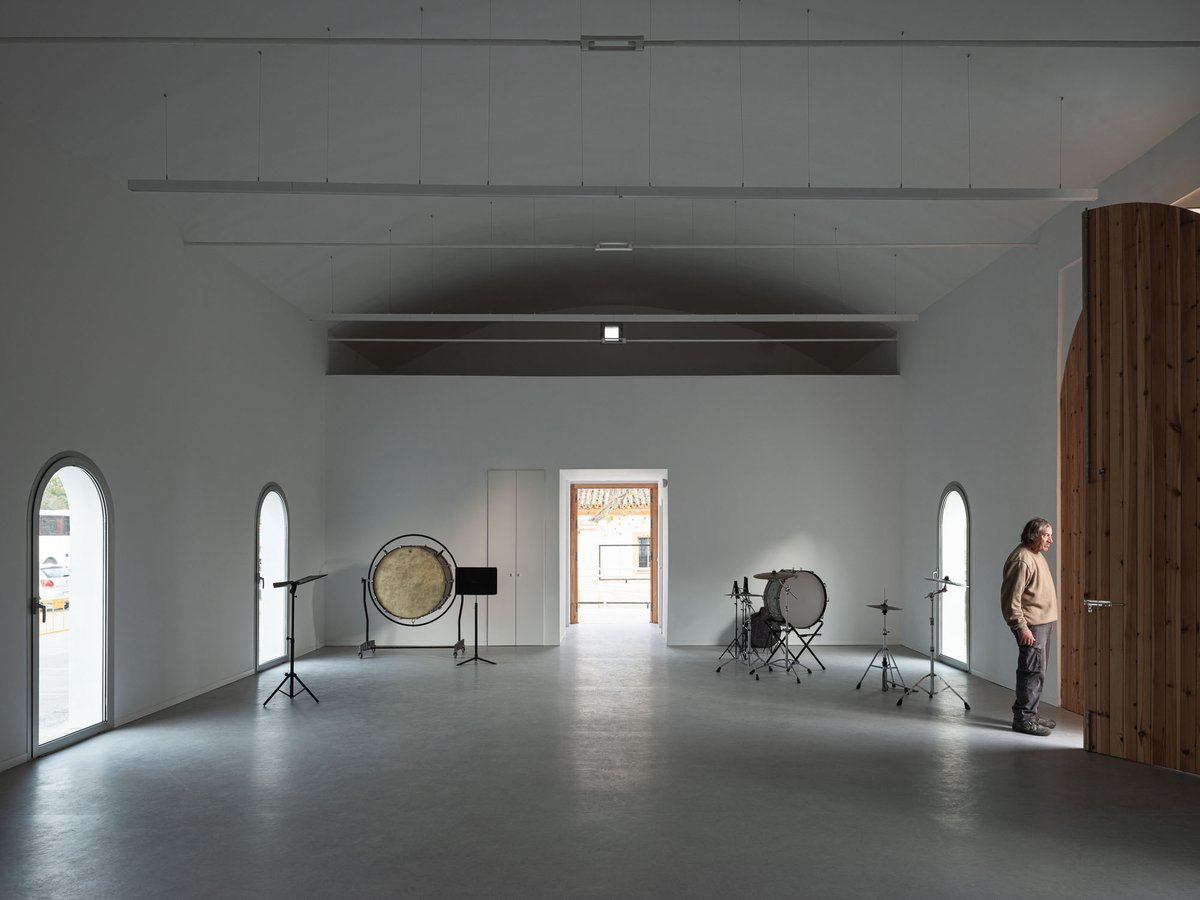 La ampliación, que parte de la preexistencia nave-andén, refuerza el conjunto, sigue la traza del tren e integra la cota del antiguo muelle. Se desarrolla en una única planta y toma la bóveda como elemento clave tanto para configurar los nuevos espacios como para dotar de una imagen reconocible al nuevo centro cívico. El programa solicitado es, en esencia, disponer de aulas multifuncionales que puedan ser usadas por la banda de música y asociaciones vecinales. Las estancias se ordenan en hilera. Se añade, en continuidad con el vestíbulo, un corredor lineal que se va ensanchando para albergar pequeños espacios de encuentro y conversación informal.