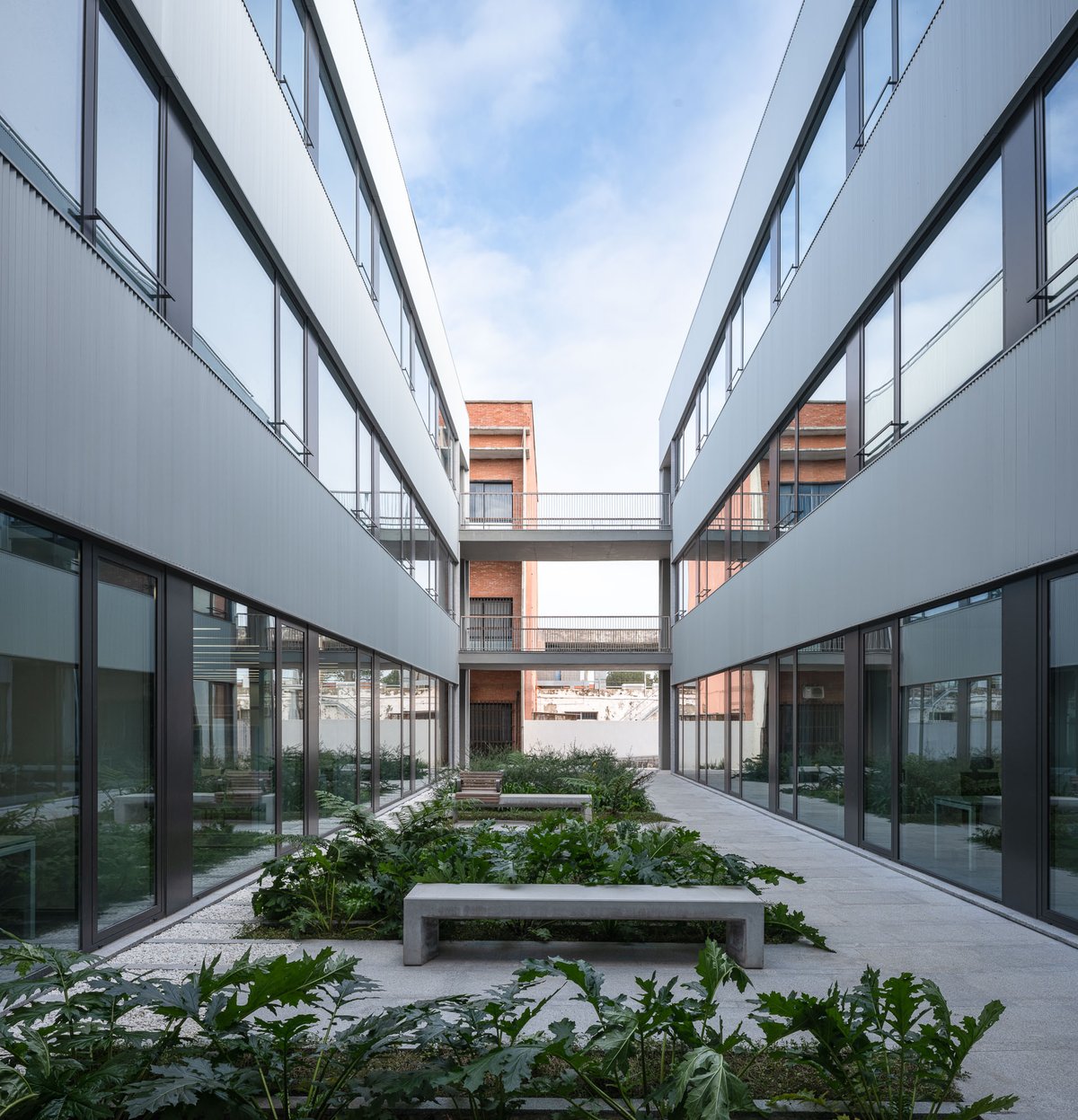 Se trata de una edificación de tres plantas y con menor altura que el edificio de OTAISA. Situada a sus espaldas con el fin de no alterar los valores patrimoniales del conjunto, permite facilitar las conexiones entre ambos cerrando en anillo los extremos de la “L” original y al tiempo, generar en su encuentro con esa edificación una estructura de patios que hace posible entender ambas como un todo interrelacionado.