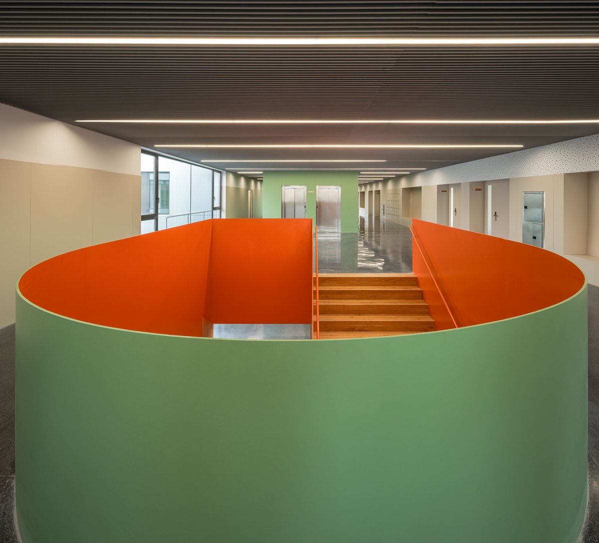 Cabe destacar la incorporación de unas generosas galerías exteriores concebidas como espacios de desahogo para los usuarios que facilitarán la evacuación y con sus grandes vuelos sirven de protección solar en las orientaciones más expuestas.