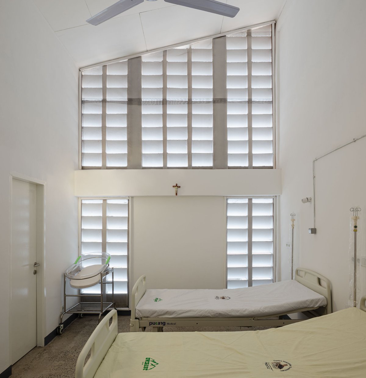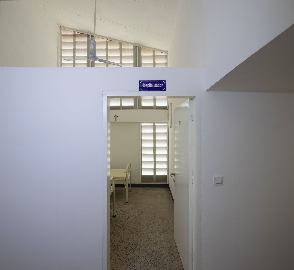 The ward is built with local materials, wood for the roof and prefabricated concrete made on site, which facilitate construction, reduce environmental impact and strengthen the link with the environment.