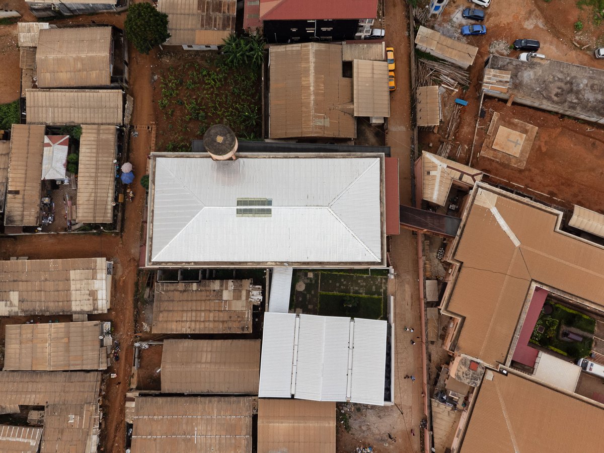 Designed with bioclimatic principles, this building responds to the site's conditions and Yaoundé's climate. Water and light—essential resources—take center stage.