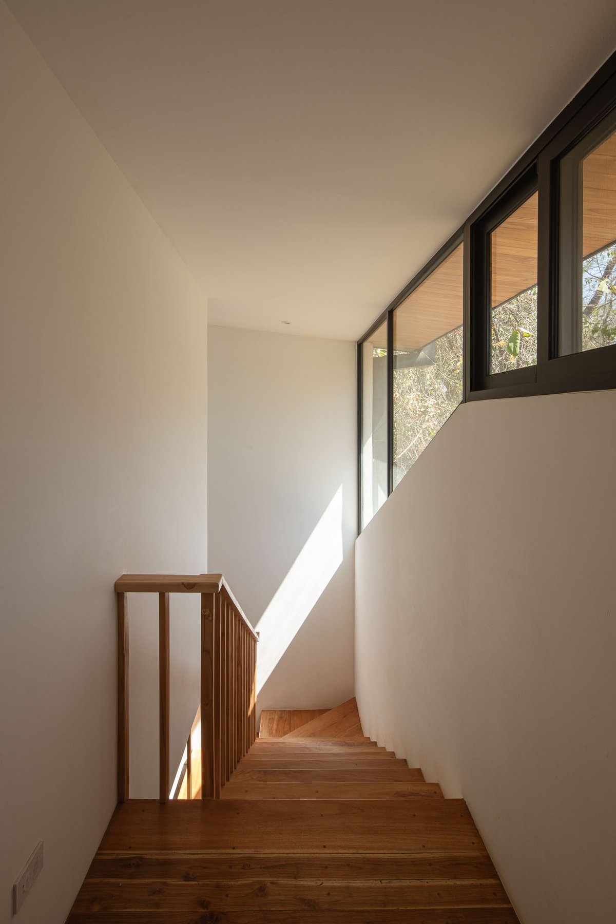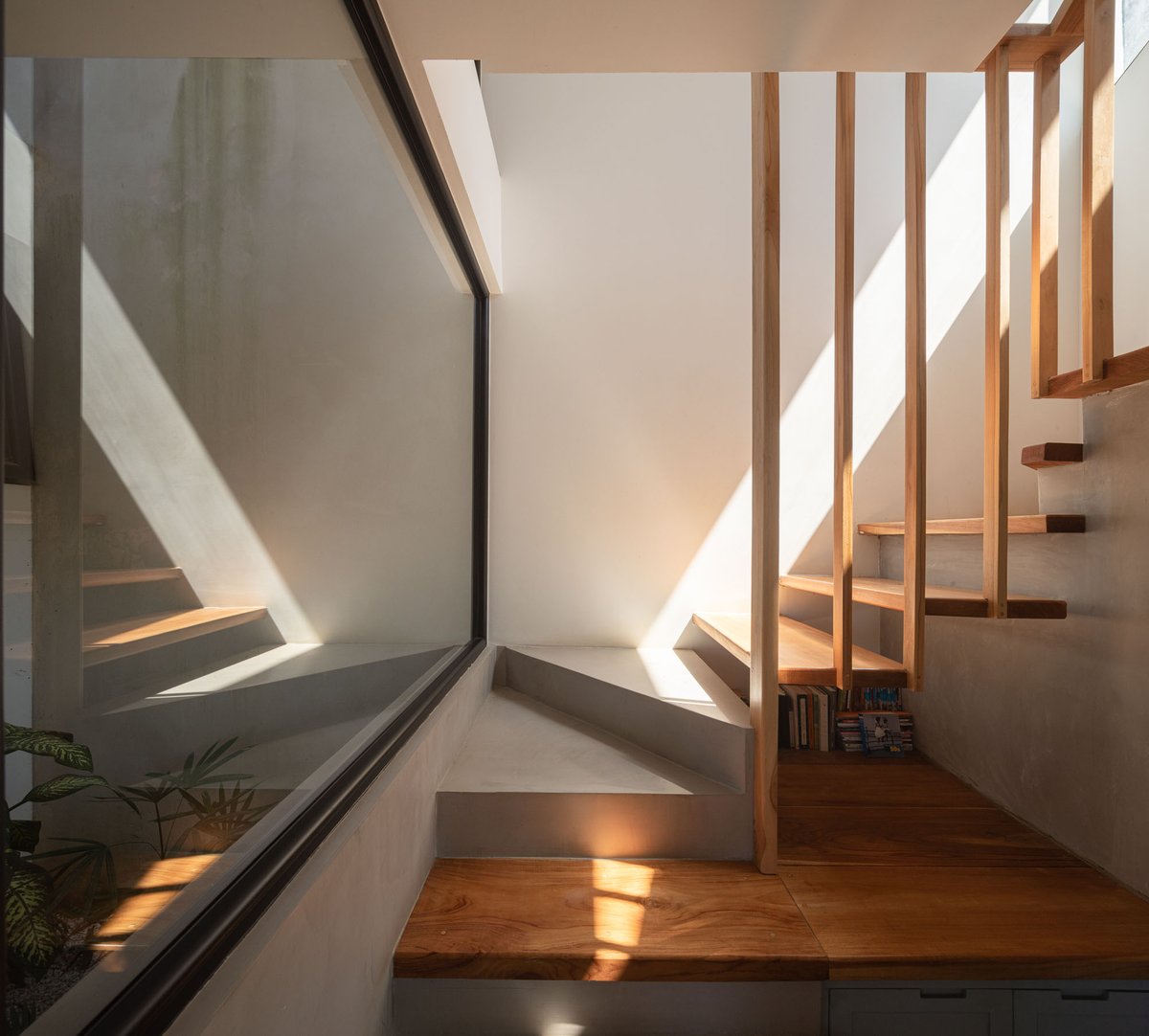 Next to the stairs a greened light yard brings natural ventilation and illumination that regulates temperature to avoid use of AC and artificial illumination.