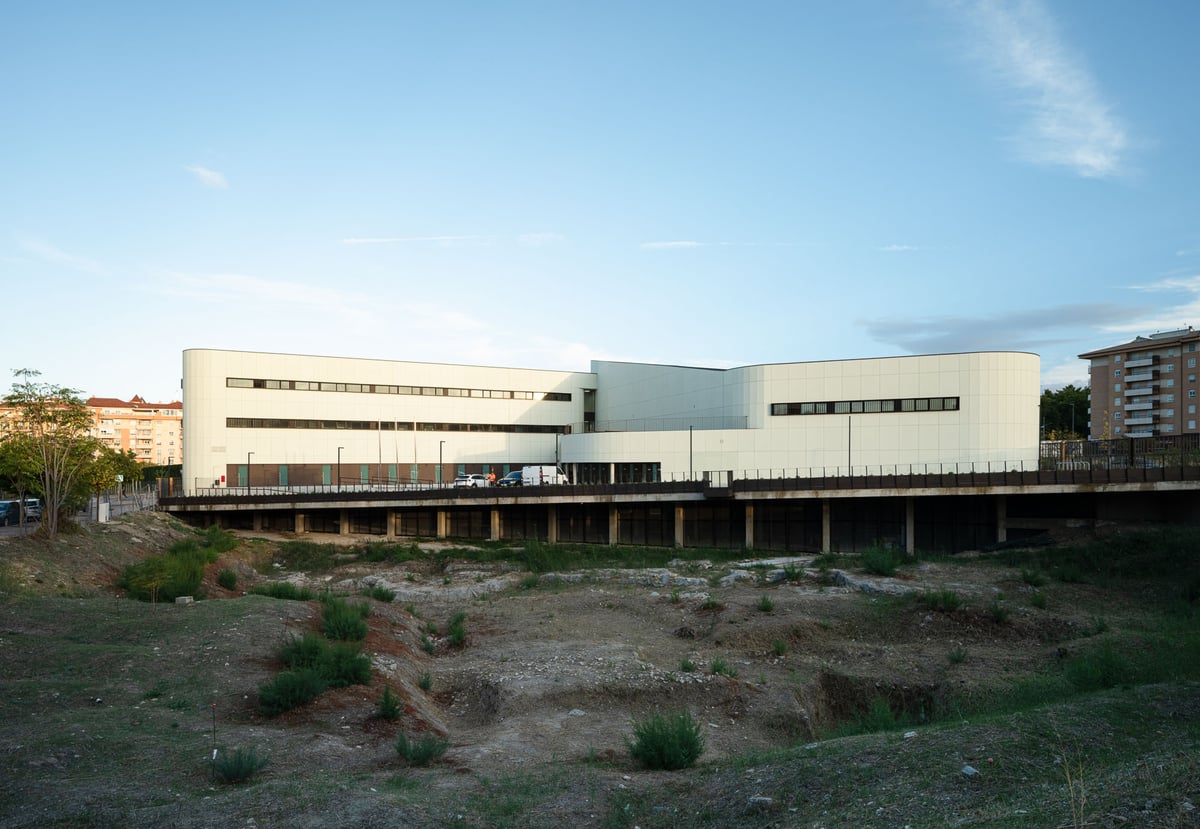 El solar disponible ocupa el 60% de la parcela de uso educativo al existir el mencionado yacimiento arqueológico en la mitad oeste de la parcela, que se reduce a un 50% (3.060 m2) al retranquear una franja de 5m de ancho como borde de protección de los restos. Los viales perimetrales están bien dimensionados para el tráfico rodado con generosos acerados a ambos lados, y arbolado de porte mediano en fase de crecimiento. La diferencia rasante máxima del acerado perimetral del área disponible es de 2,25m, pero como resultado de la excavación por intervención arqueológica, el interior se encuentra deprimido una profundidad de 3-4m respecto del acerado.