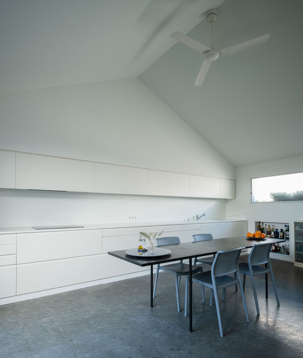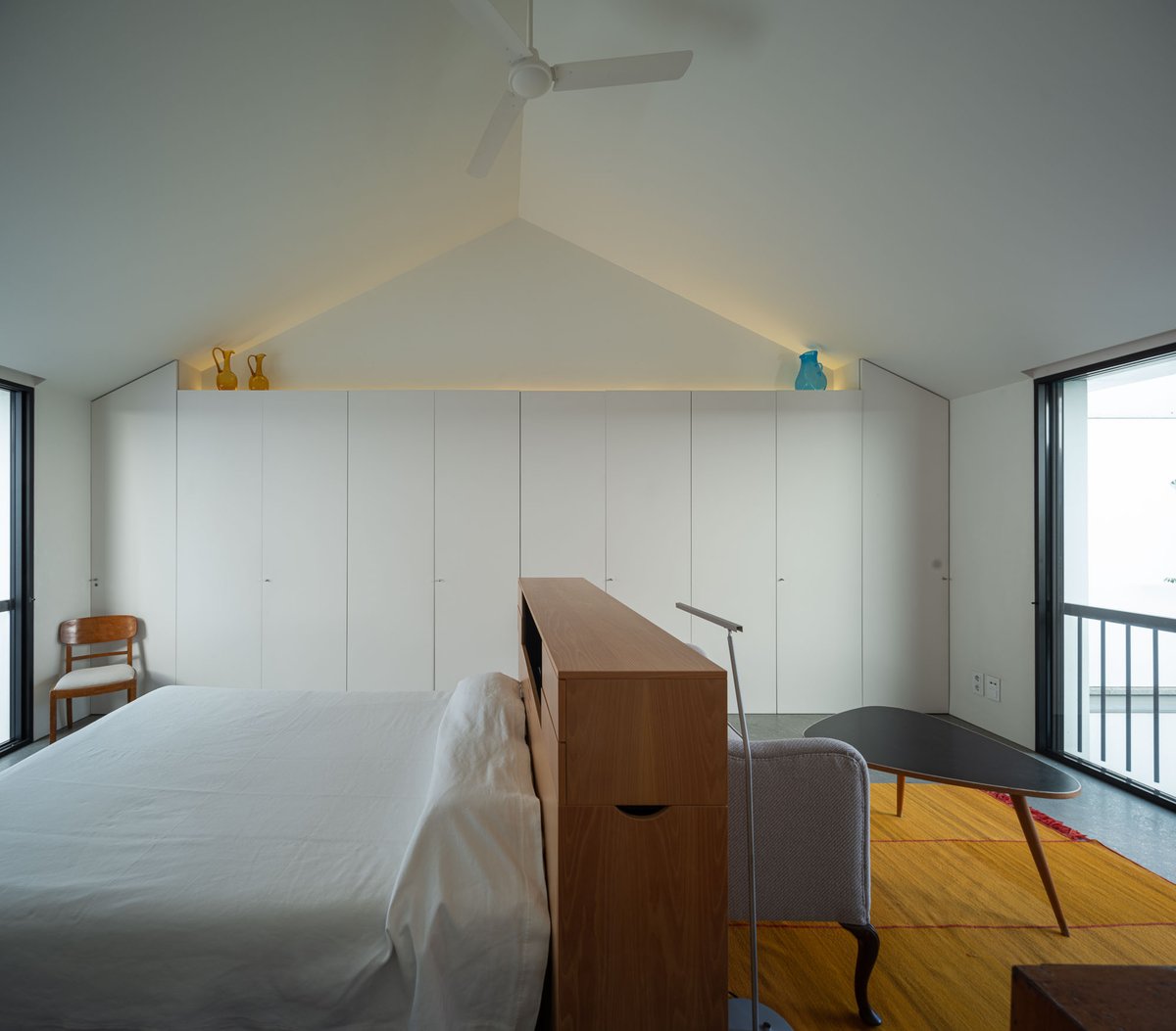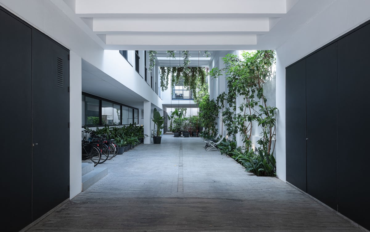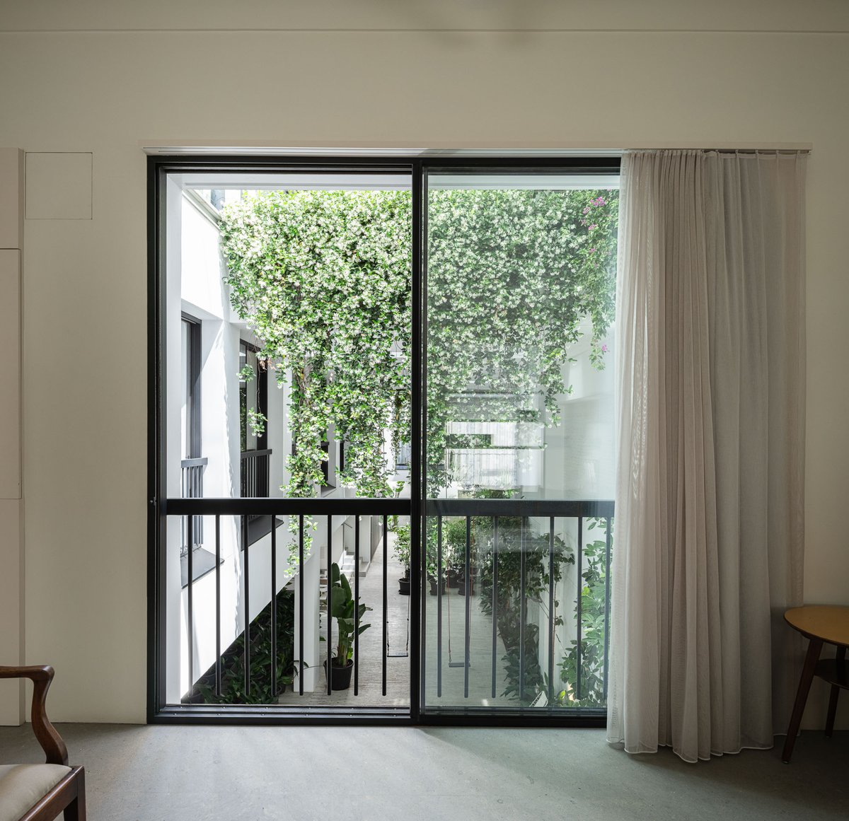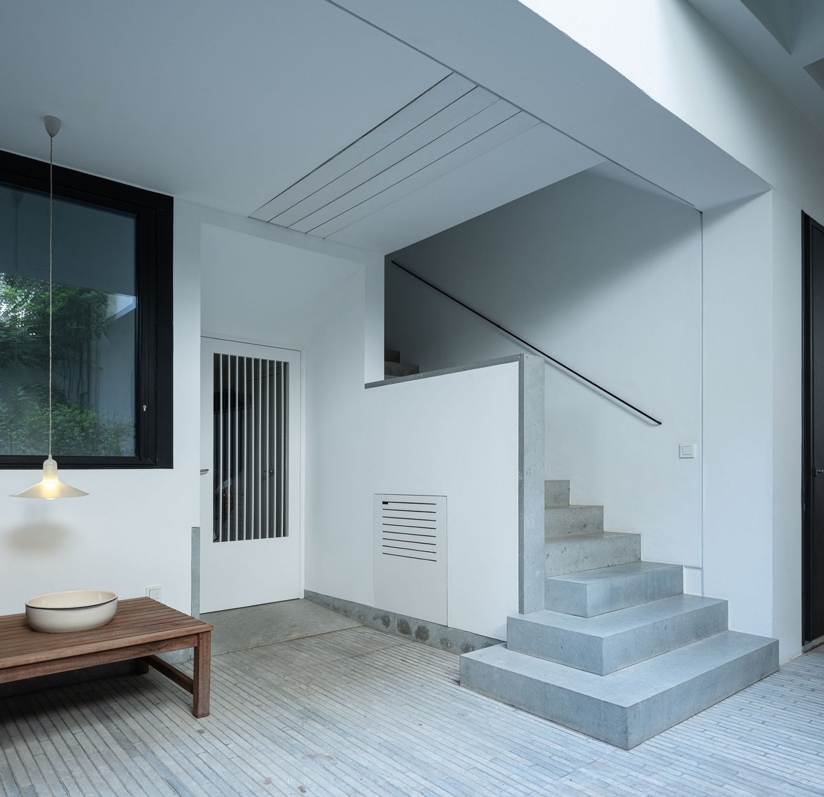 Cruz y Ortiz ArquitectosVivienda en el centro histórico de Sevilla, en un solar muy profundo y con muy poca fachada, organizada en tres plantas y vinculada a una secuencia de patios que garantizan iluminación y ventilación. Se mantiene la fachada existente por exigencias de las ordenanzas mientras que el resto del edificio se ejecuta de nueva planta. En planta baja se sitúan el acceso y las estancias ligadas al patio desde la calle. La casa se prolonga hacia un segundo patio interior y se alcanza, al fondo, un tercer patio más reducido. A lo largo del solar, se ubica una piscina interior. La planta primera reúne cuatro dormitorios, distribuidos en torno a los patios para asegurar luz natural y ventilación cruzada. En la planta segunda se dispone una gran sala de estar con salida directa a la amplia terraza, la cocina y el dormitorio principal. Un sistema de toldos permite cubrir la sucesión de patios, controlando el soleamiento y mejorando el confort en las épocas más cálidas. La estructura se resuelve con muros y losas de hormigón. La gama de materiales es reducida, hormigón visto pintado de blanco y pavimentos en piedra gris. La profundidad del solar se hace evidente en casi cualquier punto del edificio.